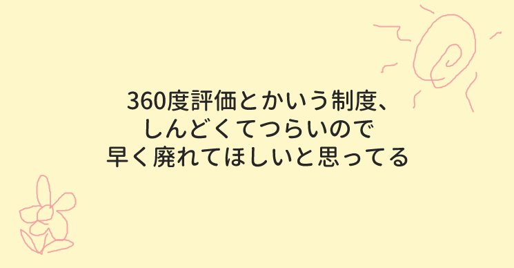 360度評価とかいう制度、しんどくてつらいので早く廃れてほしいと思ってる
